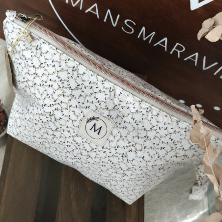 Diseñado con una cremallera resistente y un asa lateral para facilitar su transporte, este neceser es tan práctico como elegante. Su interior completamente forrado asegura que todos tus accesorios y herramientas de tejido estén siempre protegidos y en su lugar.